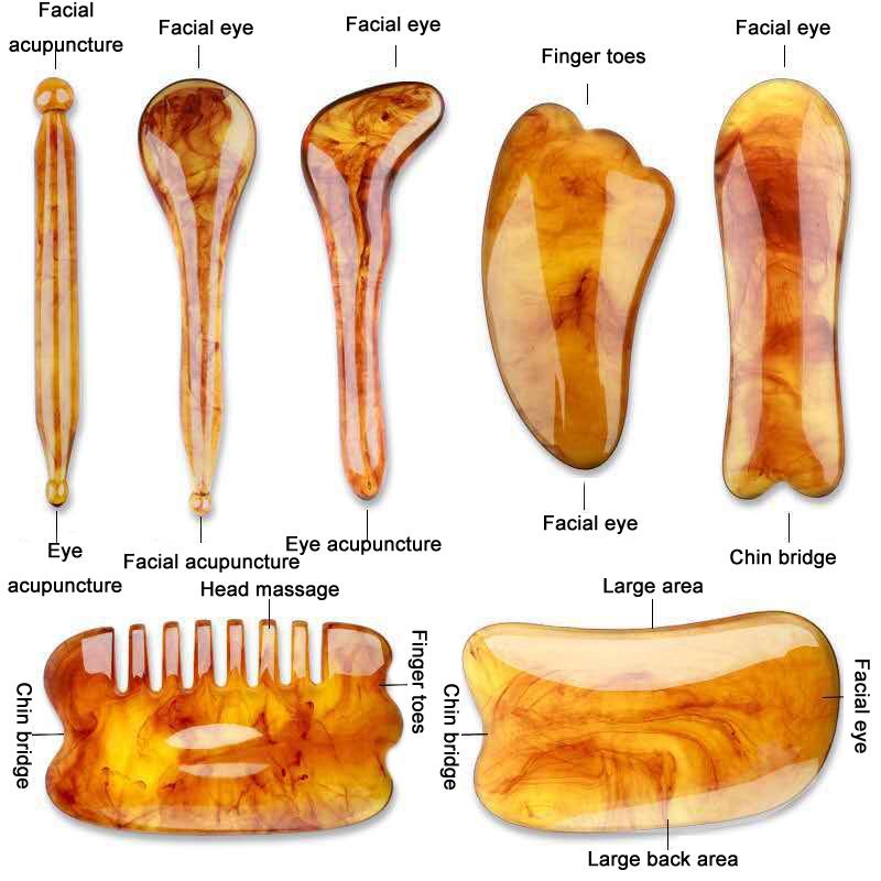 • 1 x 7-Piece Facial Tendon Stick Scraping Board Set Pink