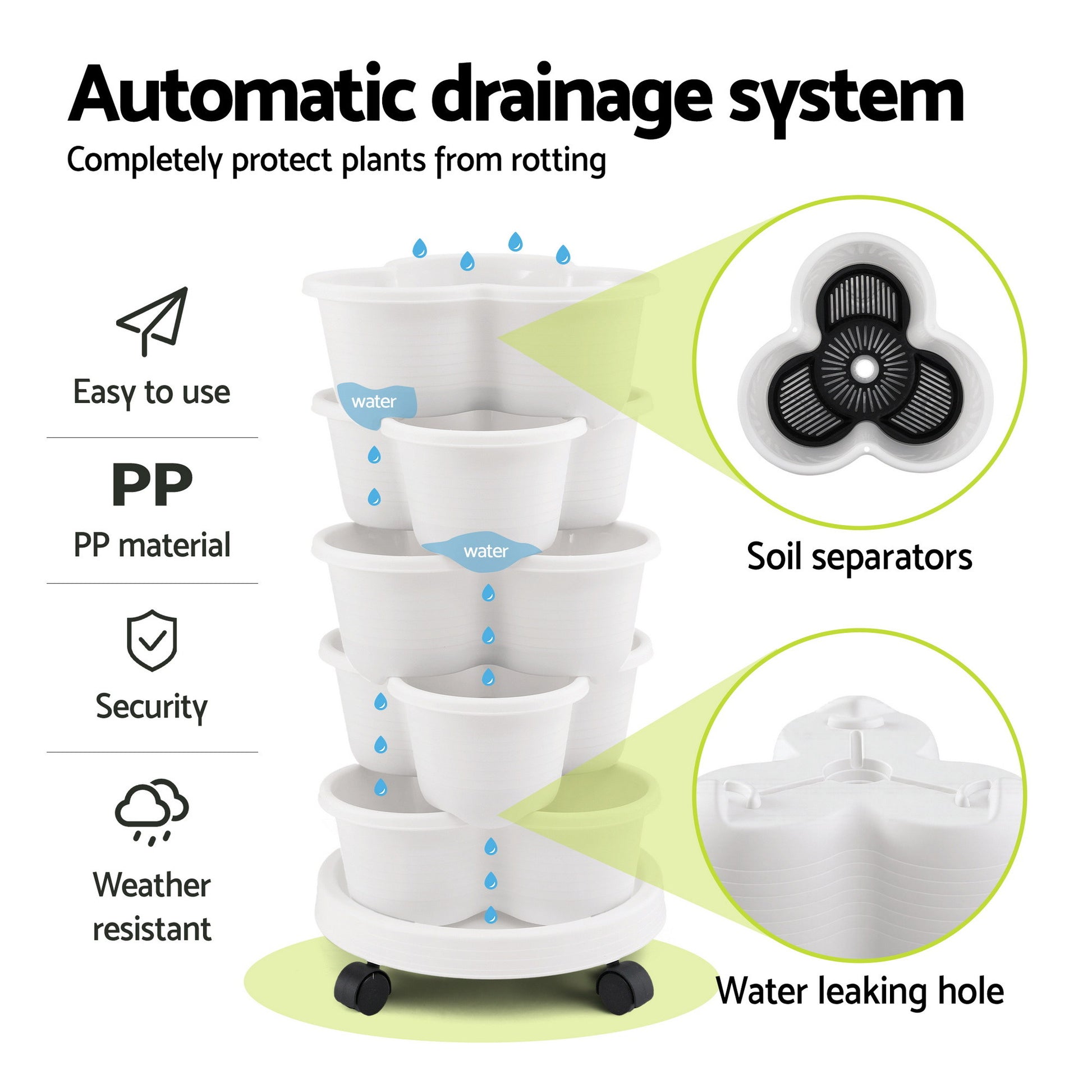 Auto-Drainage System: Prevents root rotting with soil separators.