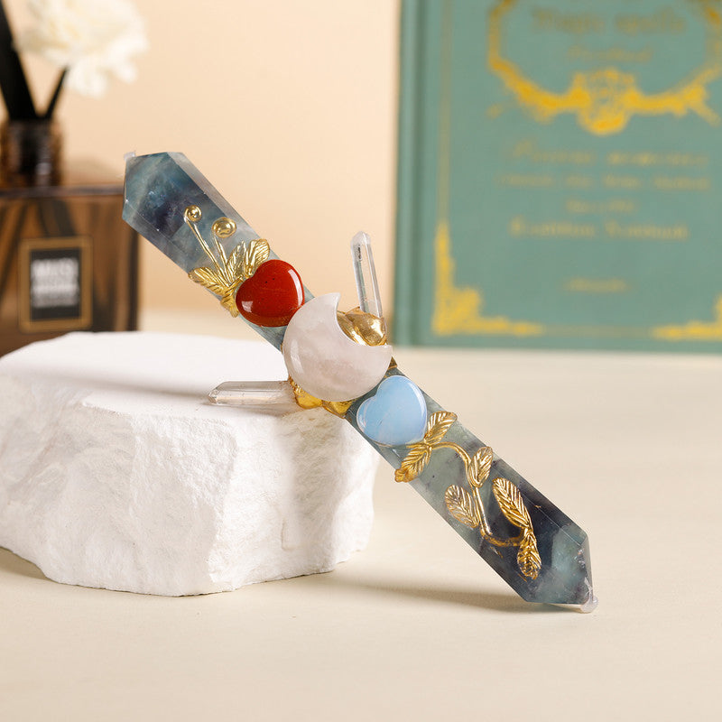 Handmade Crystal Wand Natural Stone Scepter Raw Gemstone Magic Wand Healing Tool Green Fluorite A
