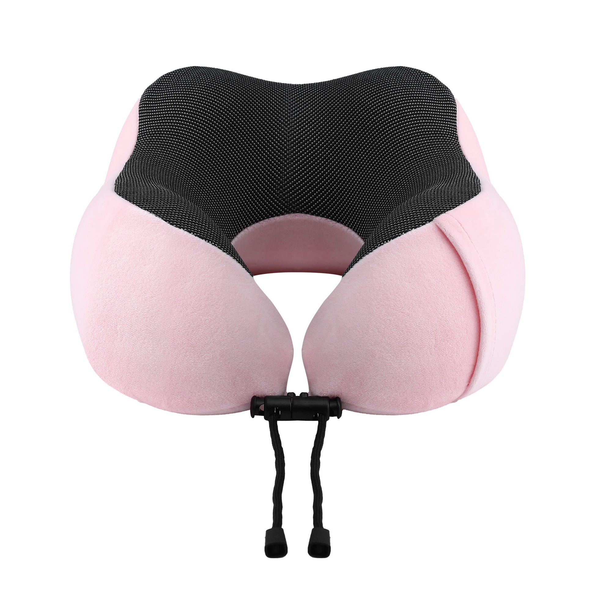 Wanderlite Travel Pillow for Airplanes Memory Foam Neck Pillows for Traveling, Soft & Washable Cover with Storage Bag, Portable Plane Accessories for Airplanes Offices Cars, Pink