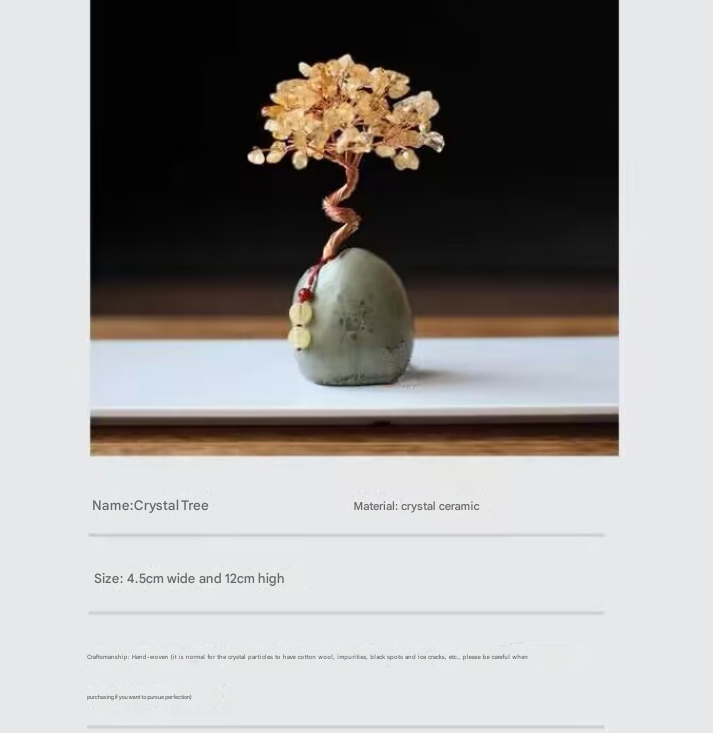 Natural Crystal Wealth Tree - 12cm Feng Shui Decor, Elegant Office Desk Ornament