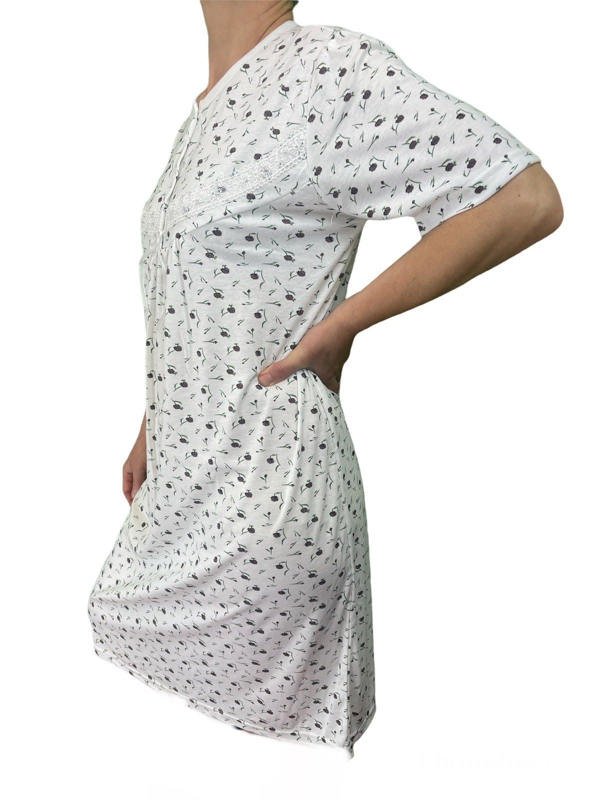 Womens Ladies Cotton Nightie Night Gown Slip Petticoat PJs Sleepwear Dress - White/Purple - 16